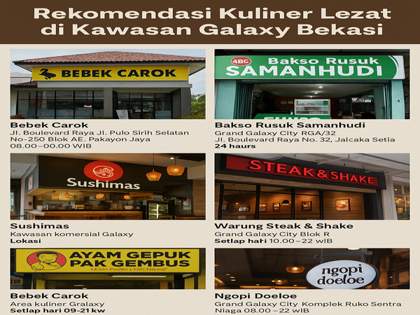 Bagi masyarakat yang tengah mencari tempat makan berkualitas di area Galaxy Bekasi, berikut adalah beberapa rekomendasi kuliner yang layak untuk dicoba sebagai pilihan santapan yang menggugah selera.