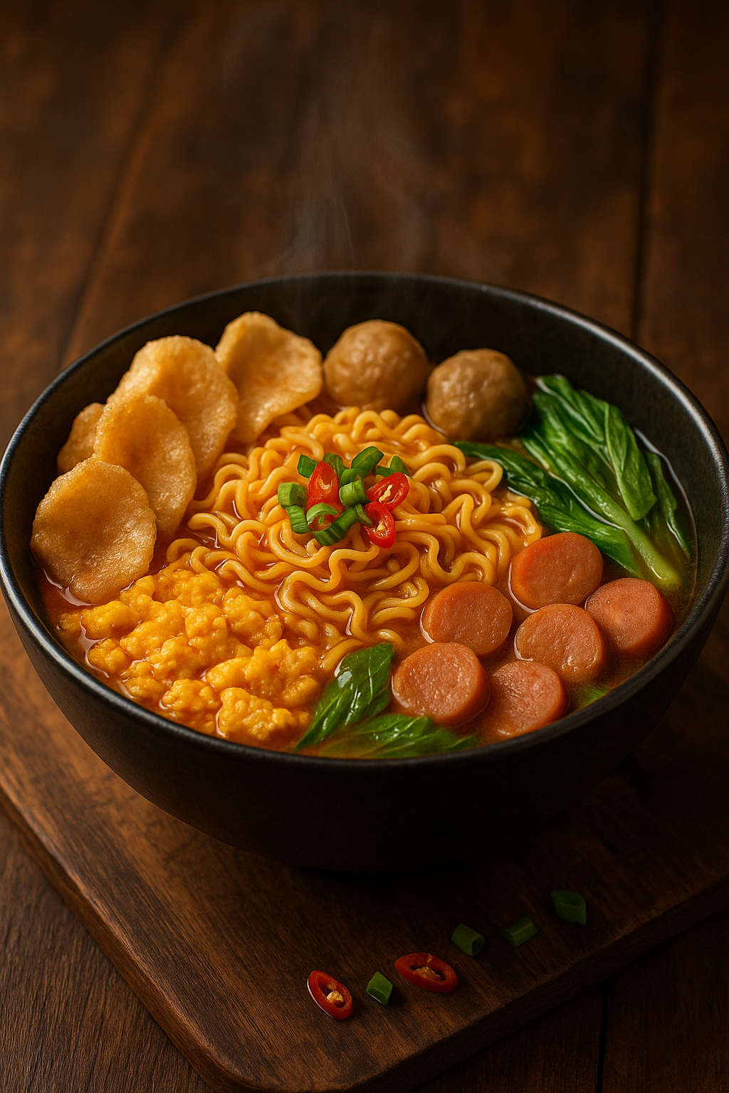 Seblak kuah kari: Tambahkan bubuk kari dan santan untuk sentuhan rasa India.