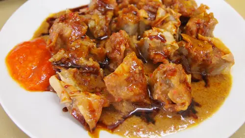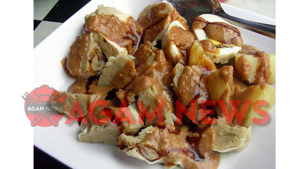 - Siram dengan saus kacang, tambahkan perasan jeruk limau, dan sambal sesuai selera.
